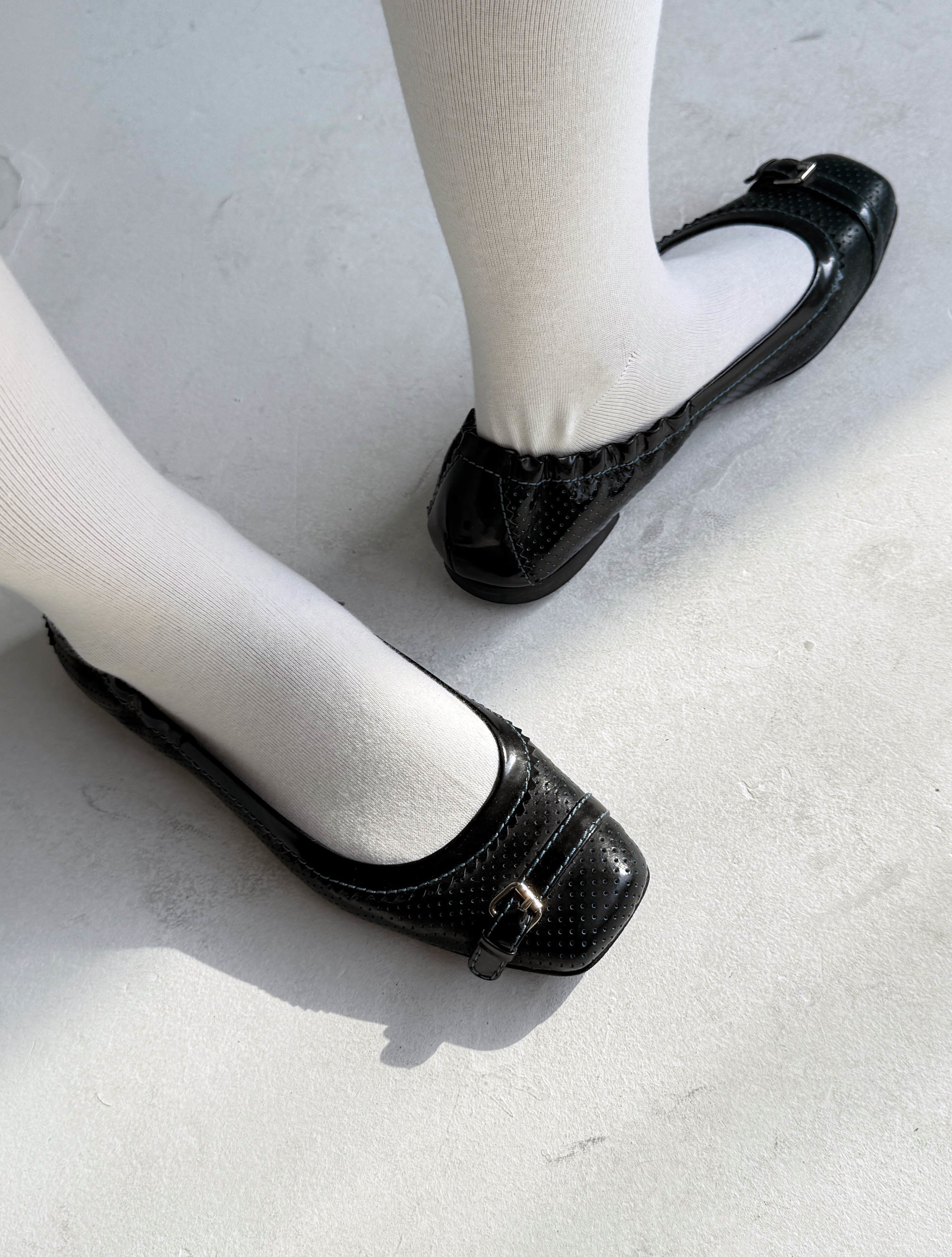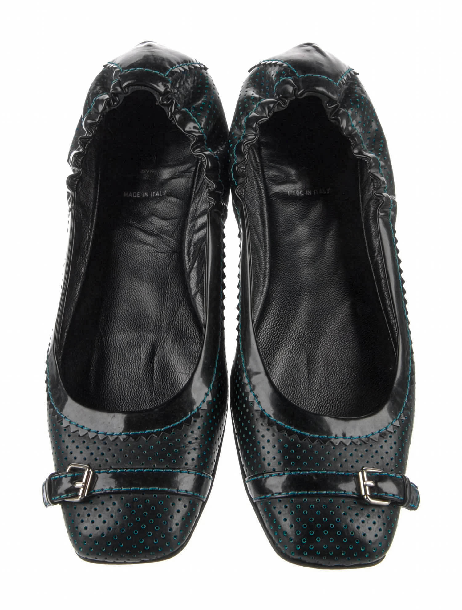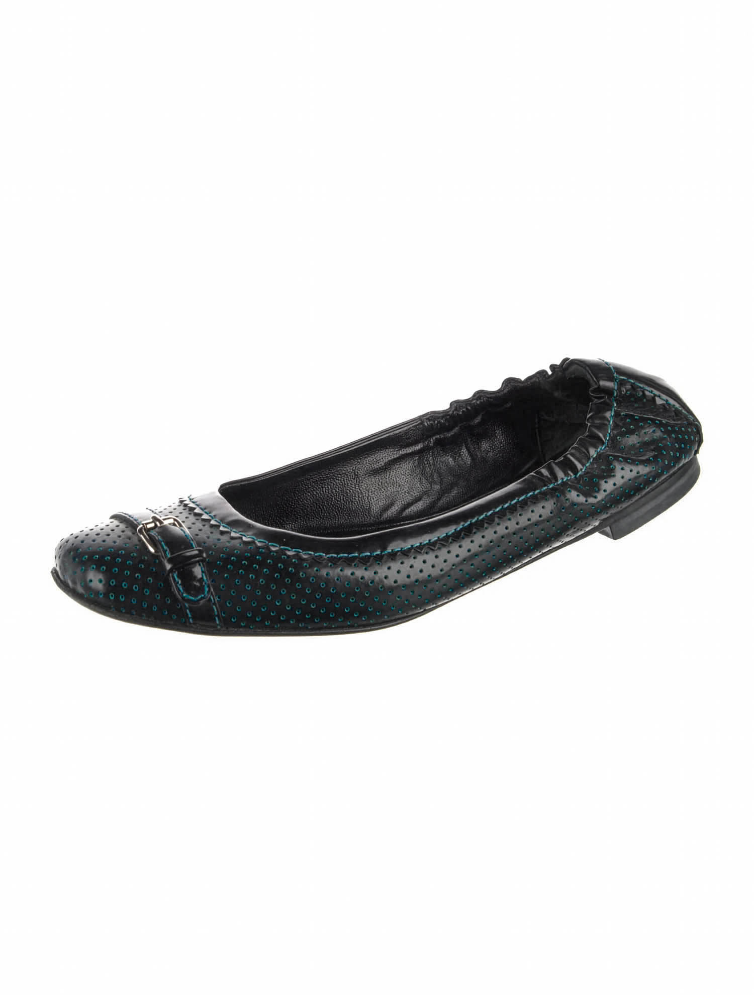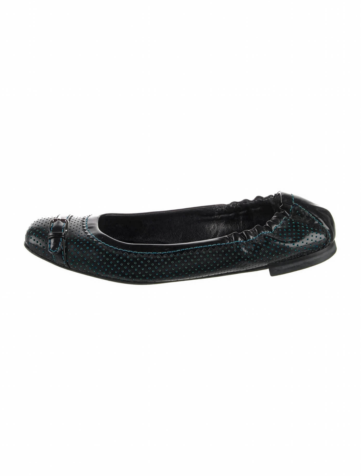 Fendi Perforated Leather Buckle Strap Trim Flats
