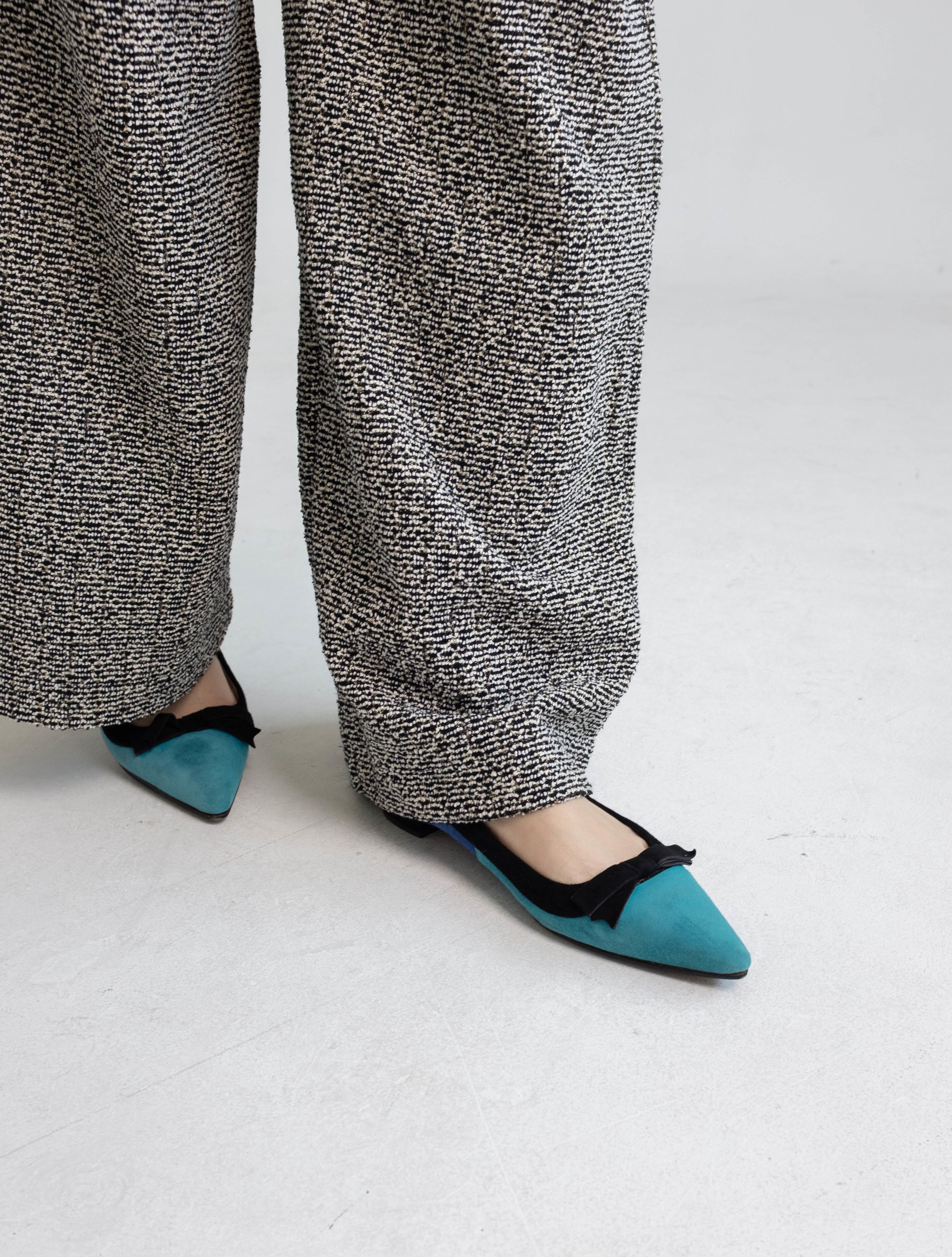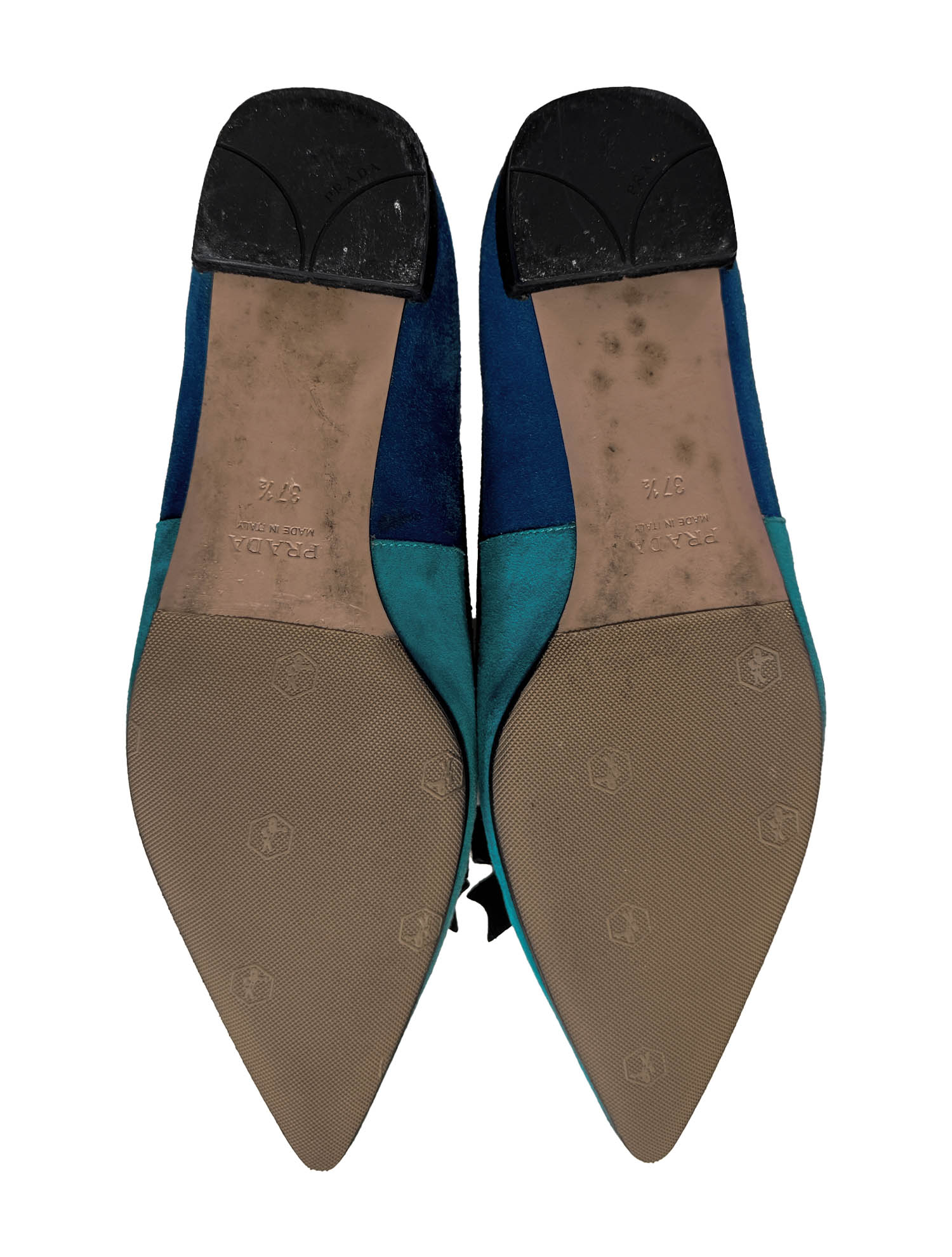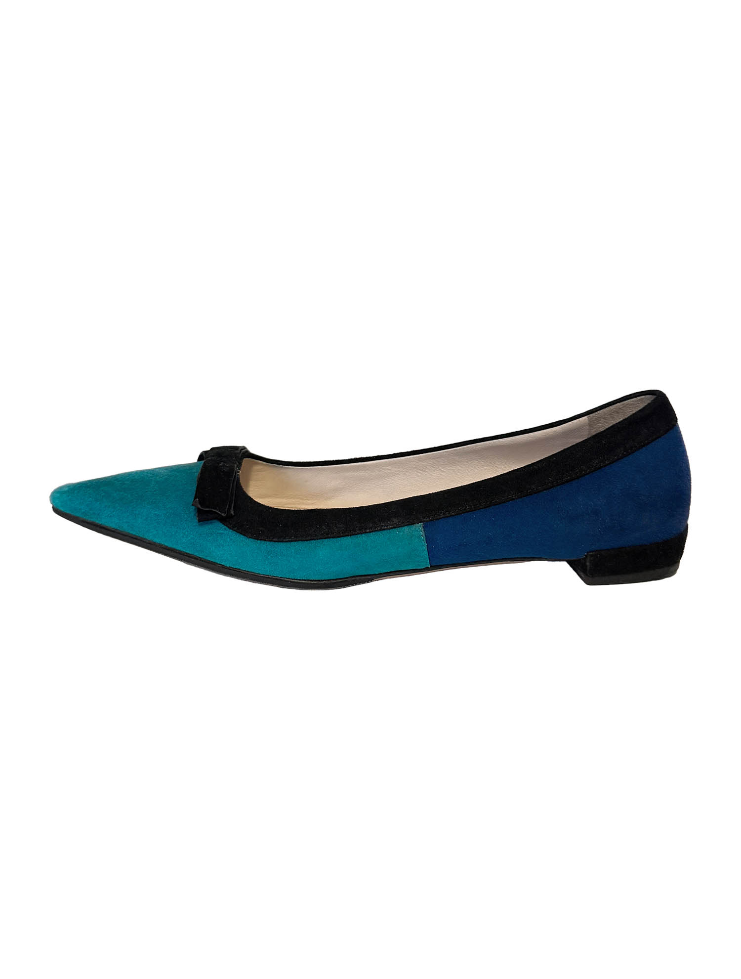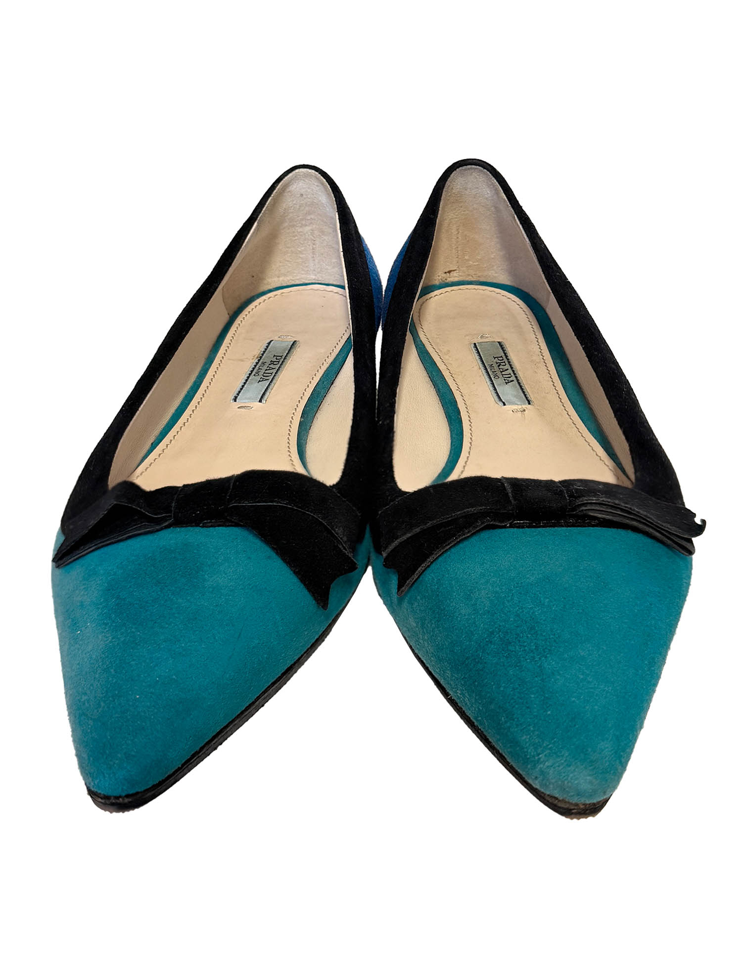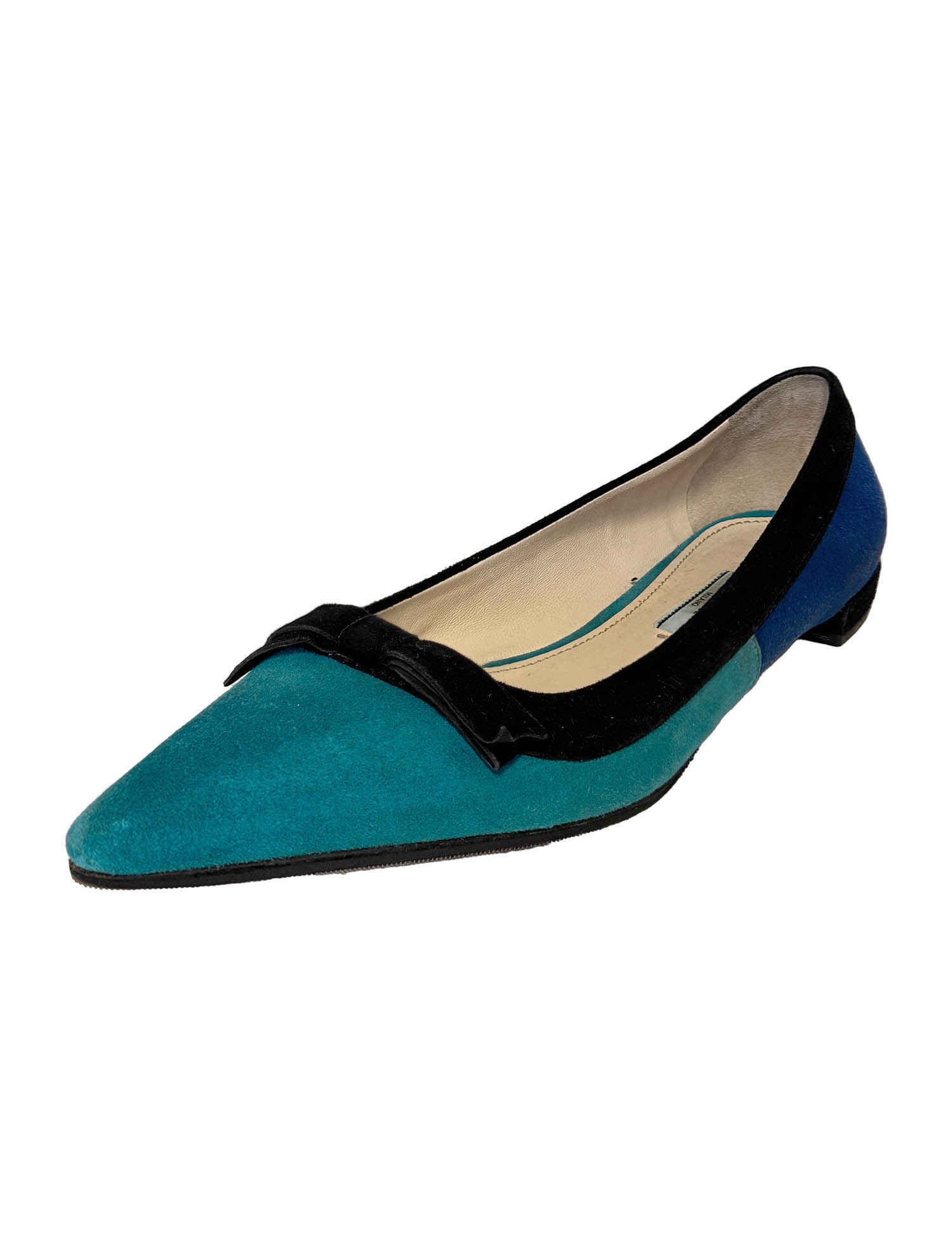 Prada Suede Colorblock Bow Accents Flats