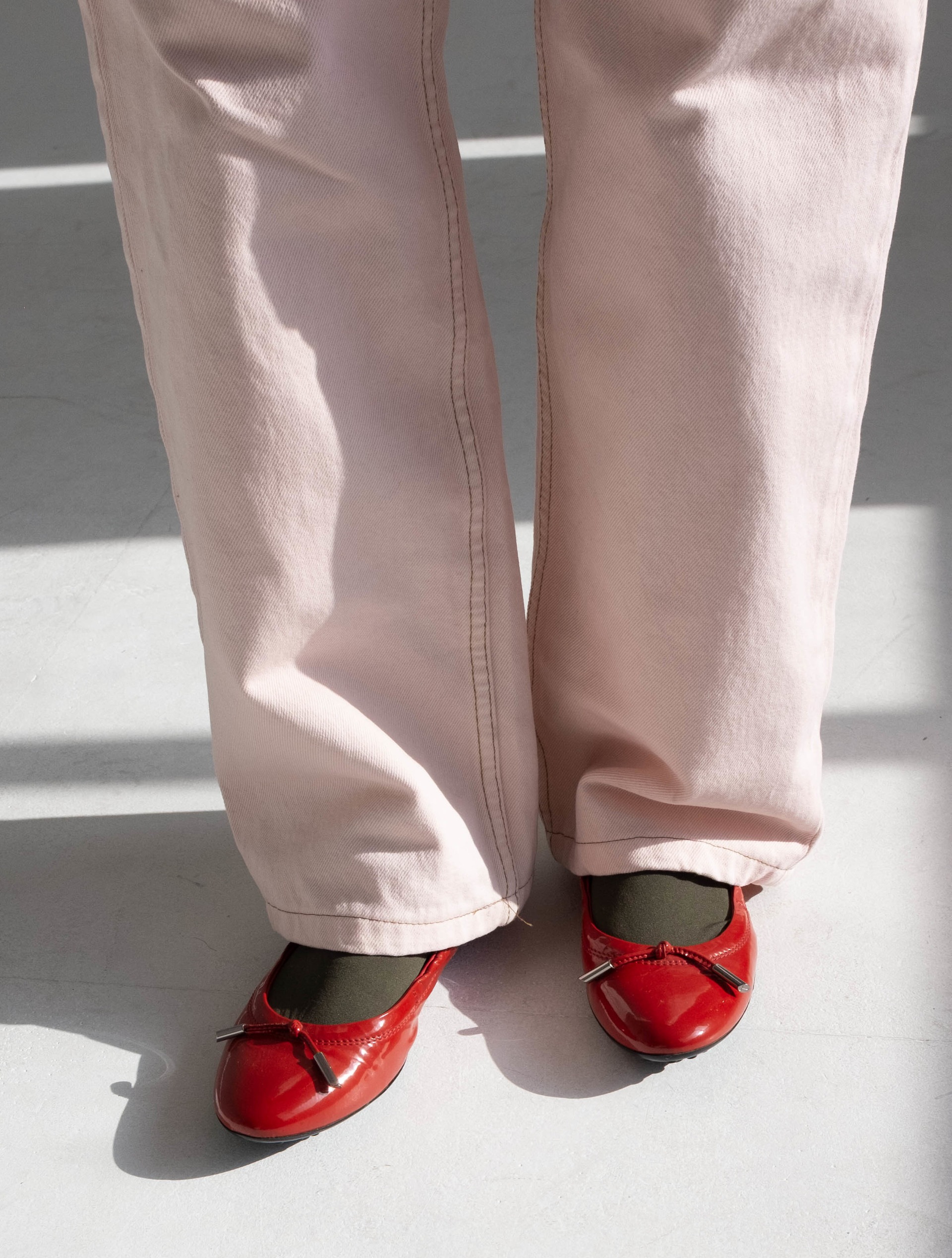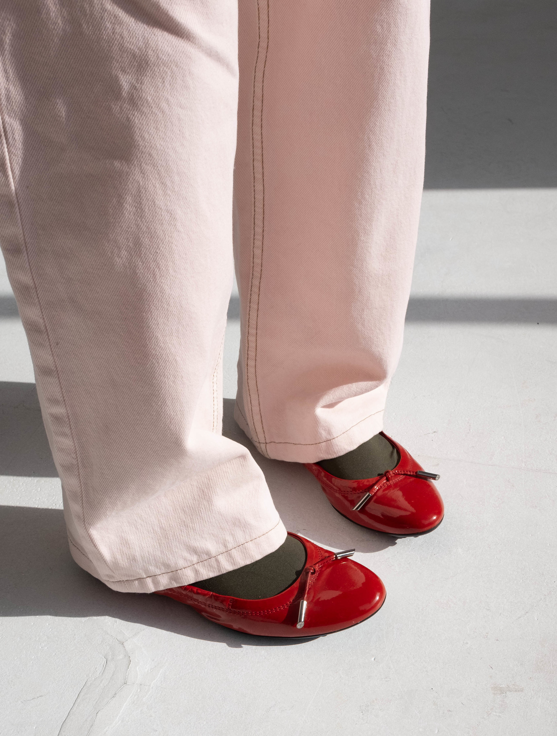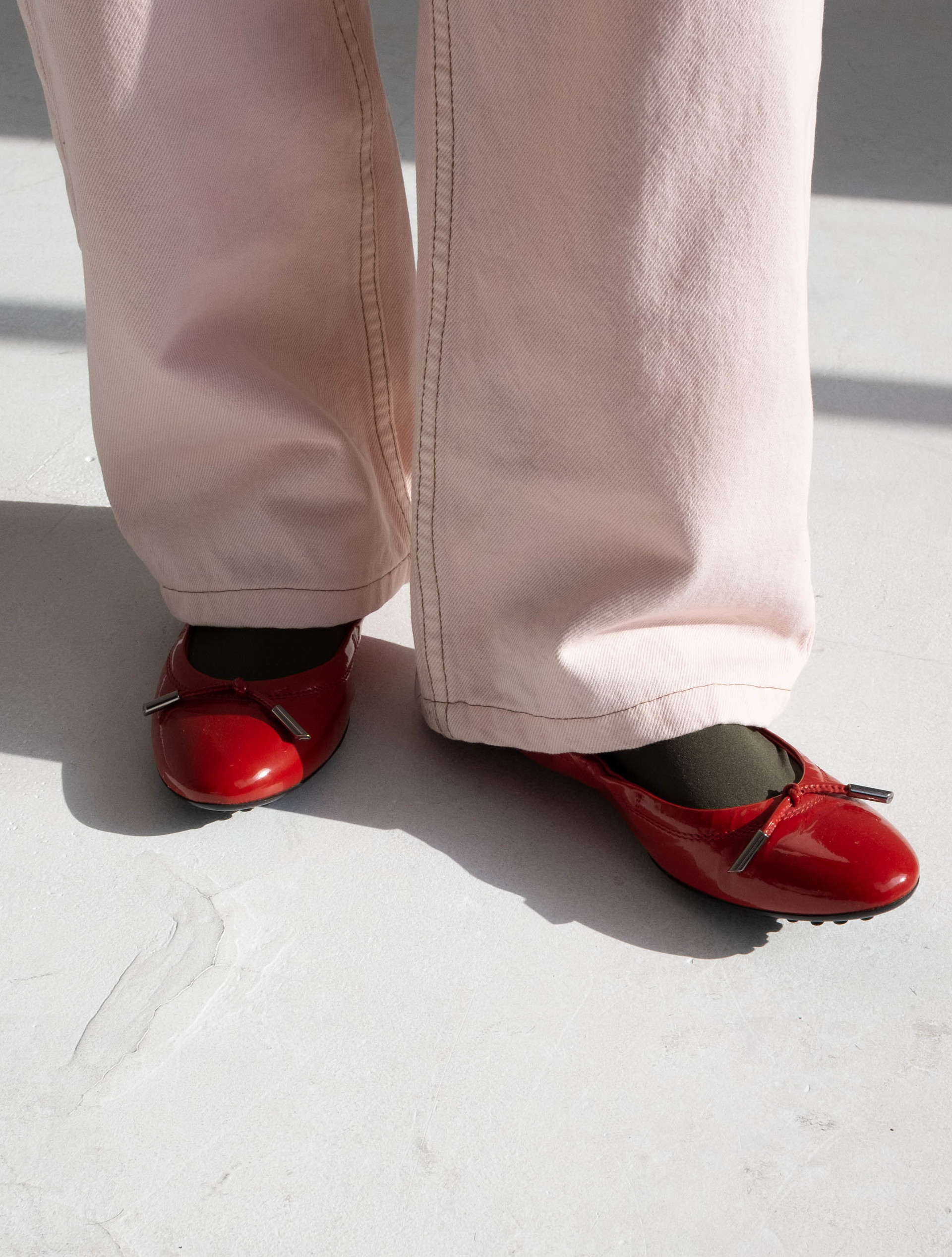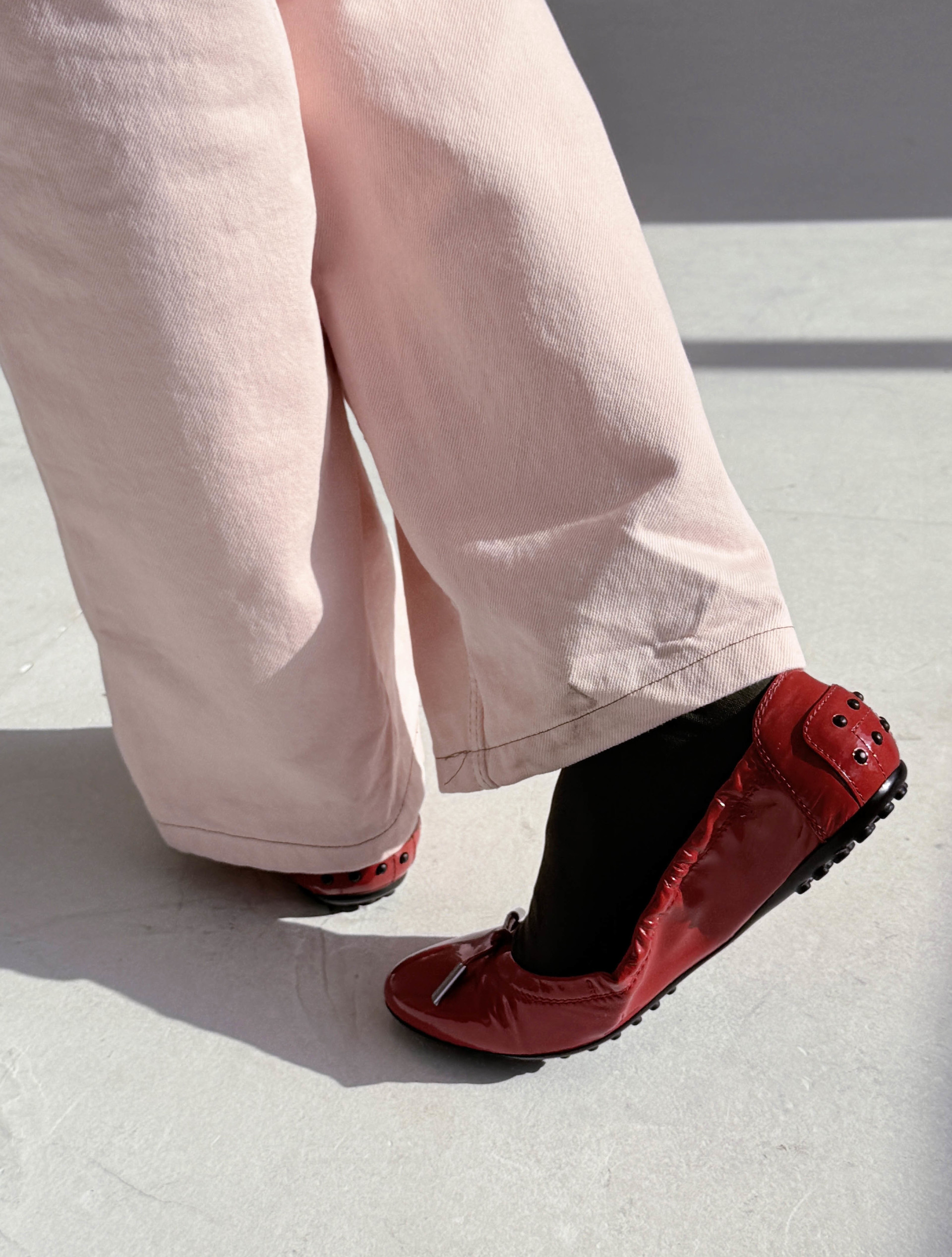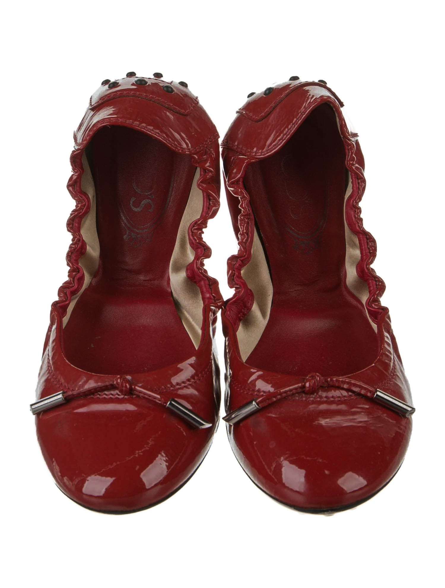 Tod's Patent Leather Bow Accents Flats (Red)