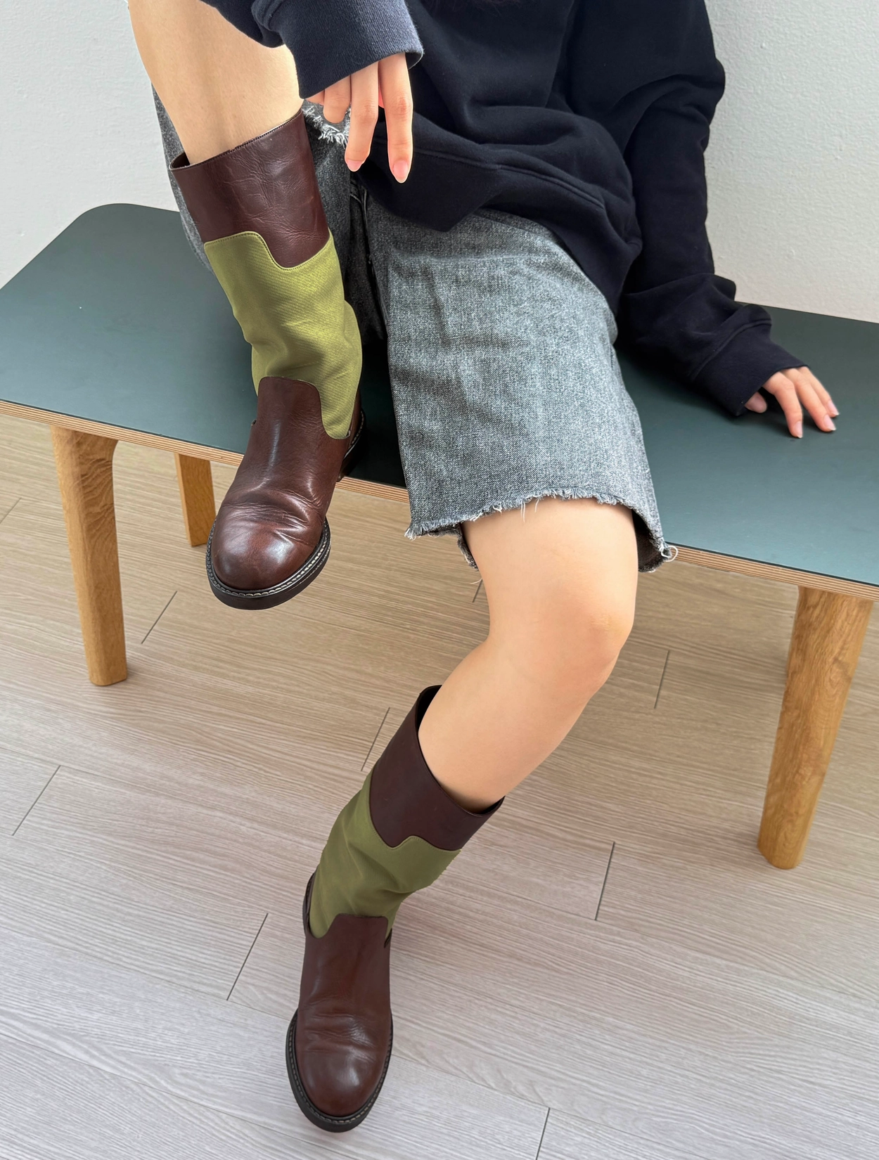 Marni Leather Canvas Trim Boots