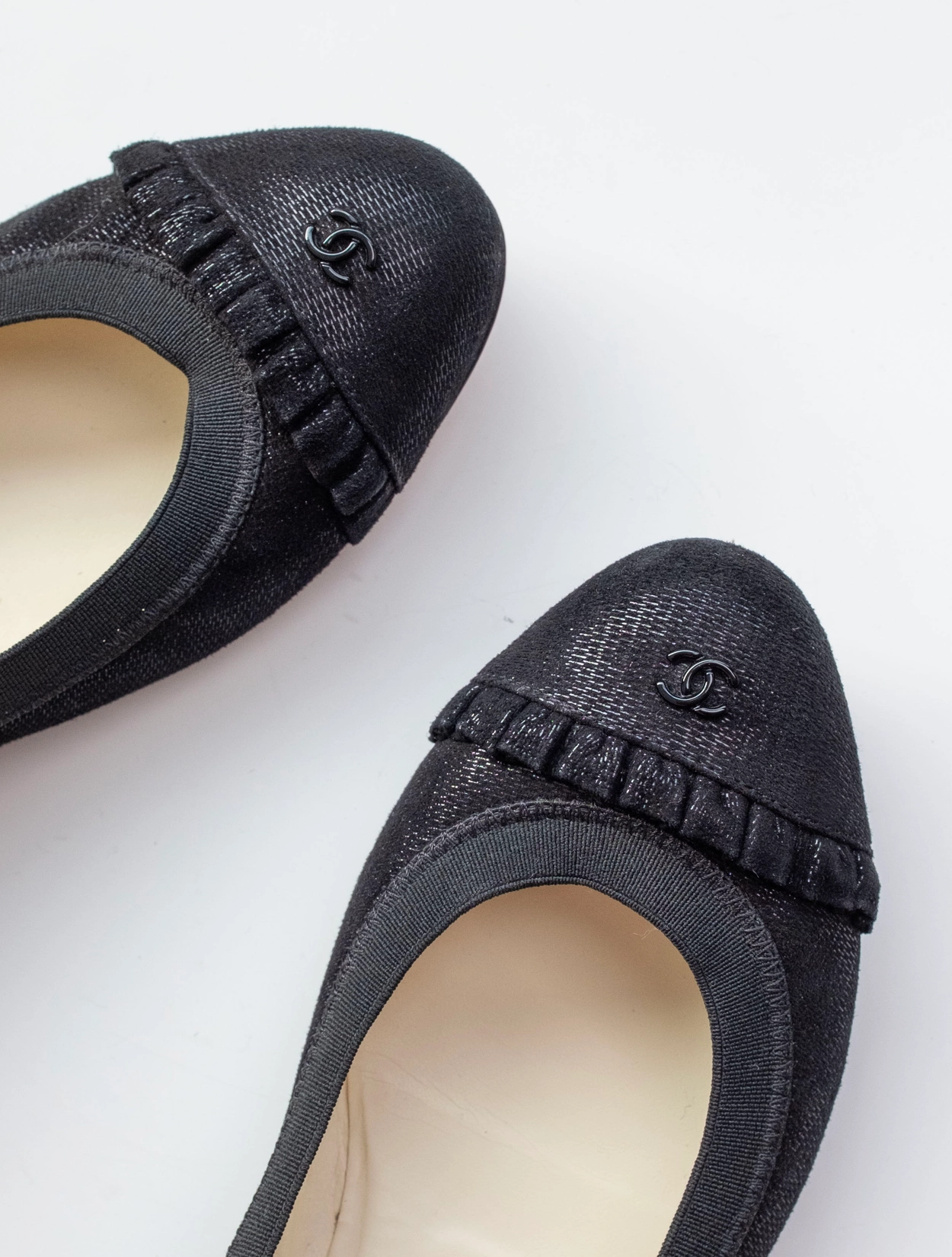 Chanel CC Logo Metallic Suede Flats