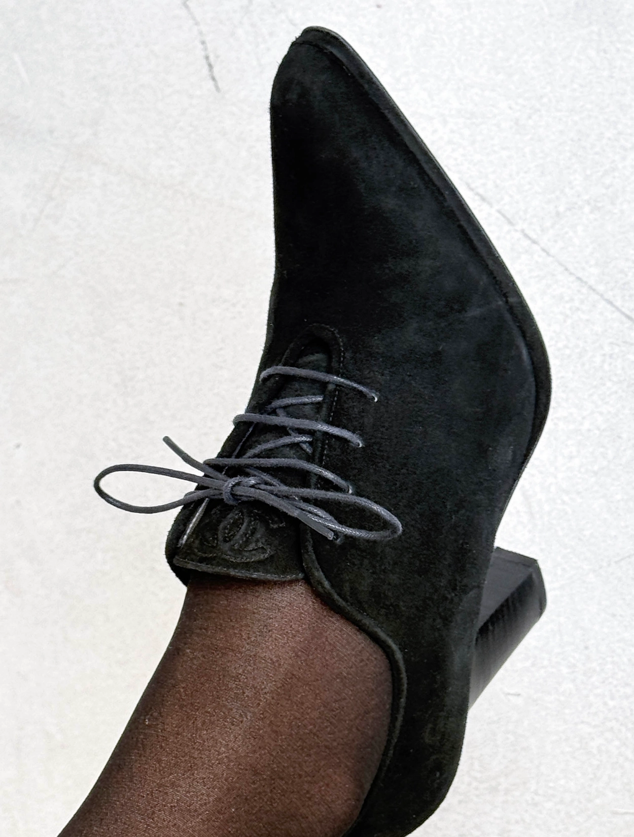Chanel Suede CC Logo Lace-Up Pumps