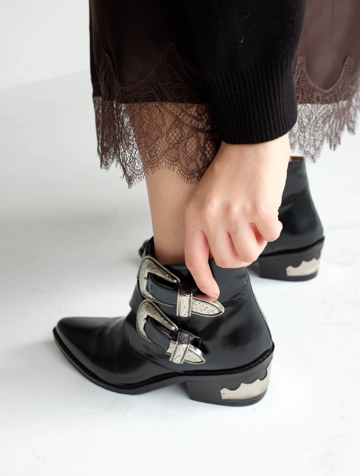 Toga Pulla Leather Buckle Accents Ankle Boots